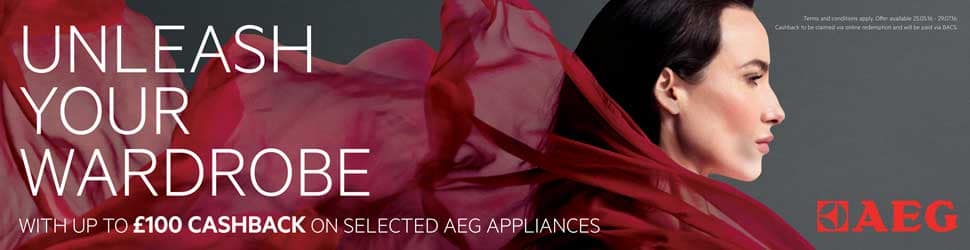 It’s that time of year again when AEG have their cashback promotion and this time it’s on a great selection of products. ‘Unleash your wardrobe’ and ‘unlock your taste buds’ are the latest taglines for the new cashback offer and have a variety of laundry, cooking, refrigeration and dishwashing products as part of the deal. You can claim up to £100 cashback on selected cookers, cooker hoods, hobs, ovens, fridges, freezers, dishwashers, washing machines and dryers. The final date for the cashback claim is August 31st 2016. You simply buy your AEG appliance (we can help you with this) and then claim your cashback on the AEG website; www.aeg.co.uk/cashback